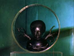 Standing well away from the army search, Dr. Blake and young David are suddenly sucked underground. They are captured by two tall, slit-eyed green humanoids and taken through underground tunnels to the flying saucer. Army troops locate and blow open an entrance to the tunnels, and Colonel Fielding and a small detachment make their way to the saucer entrance. Inside they confront the Martian mastermind; it has a giant green head with a humanoid face atop a small, green partial torso with several green arm-tentacles, and is encased in a transparent sphere. The Martian mastermind is served by the tall, green, silent mutants, (pronounced "mu-tants" in the film). Under their master's mental commands, the mute humanoids have implanted mind-control devices in the lower skulls of their kidnapped victims, forcing them to attempt to sabotage an atomic rocket project being built at a military plant near the town; if they are caught the mind control devices implode, causing a fatal cerebral hemorrhage. The troops and Colonel Fielding open fire on the mutants, finally escaping from the saucer with Dr. Blake and young David. After a short running battle in the tunnels they climb their access ladder to the surface. Orders are given for everyone to quickly leave the sandpit area: Fielding's troops have planted timed explosive charges aboard the saucer.