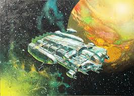 The party finds a very recent wreck in space. The entire inside of the 23 cruiser is a meat locker with walls smeared with blood. There are bits & pieces of corpses floating in with. Several strange surgical tools float in the enclosed space. The atmosphere is slowly leaking. There is a single neat pile of sexual organs left behind!